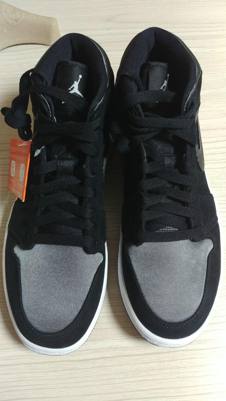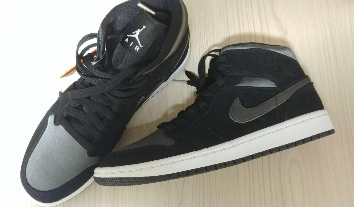 이 녀석입니다. 에어 조던 1 미드 se 모델 검은색 회색 조합입니다. 안 그래도 너무 하얀 운동화만 산다고 생각했던 저에게 딱 원했던 컬러였습니다.