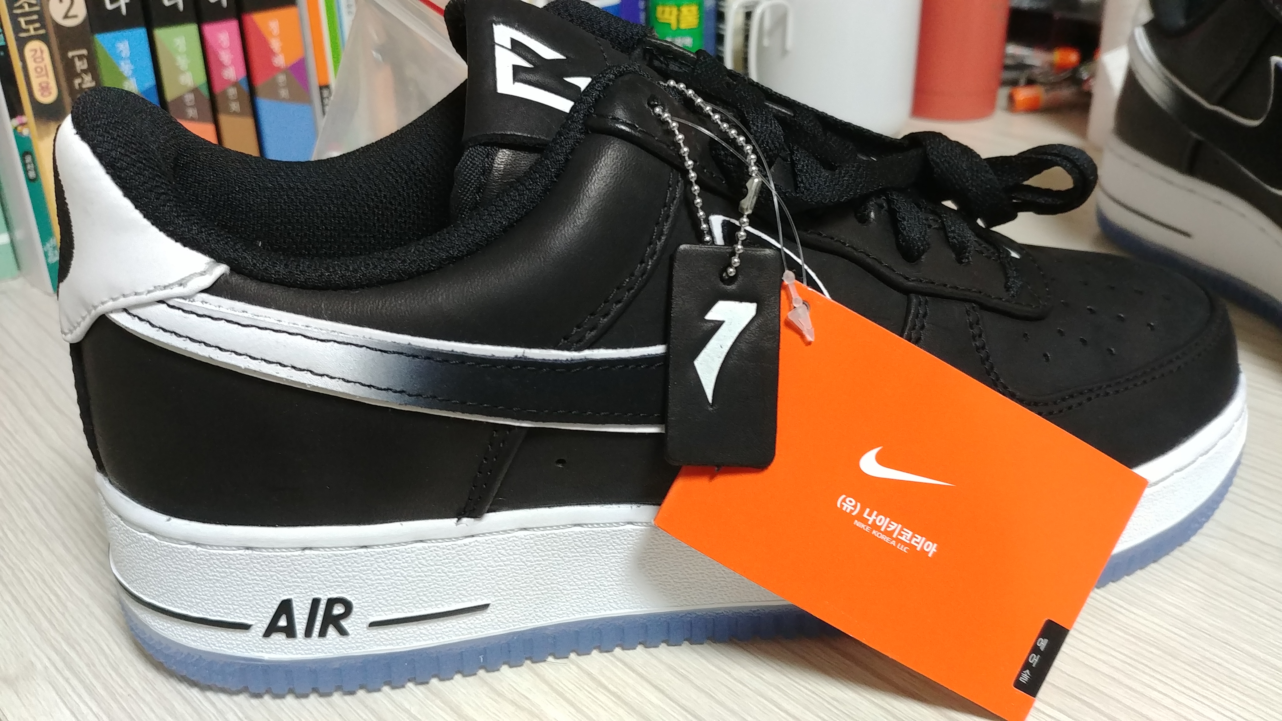 지극히 개인적인 얘기를 해보자면 이 신발은 저에게 주는 선물이기도 하지만, 곧 있을 친구의 결혼식에 신고 갈 계획으로 사기도 했습니다. 제가 결혼할 때는 안 될 것 같고 아무튼 남이 결혼하는 결혼식에 에어포스1과 양복을 매치해서 가는 게 오랜 꿈이었는데 좀처럼 주변에서 결혼을 안 하더라구요. 그런데 엊그제 발가락에 금이 가는 사고를 만나는 바람에 신고 갈 수 있을지 의문이 생겼습니다. 당분간은 이 상태로 고이 모셔두어야 합니다. 어쨌든 여기까지 소개하고 글 마치겠습니다.