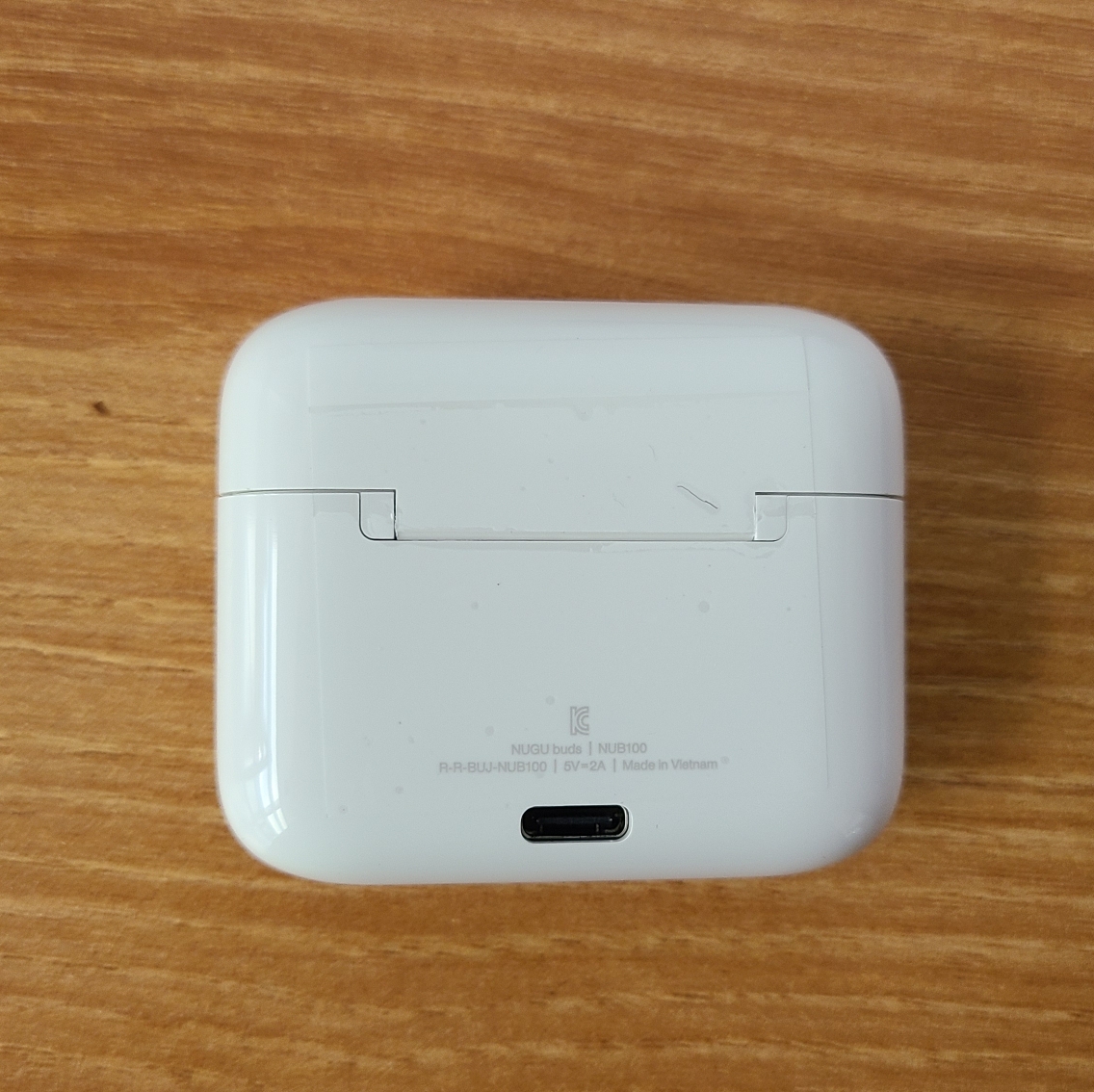 충전 케이블을 꼽고도 세워놓을 수 있는 위치에 충전 단자가 있습니다. 전반적인 생김새는 흔히 알고 계신 에어팟하고 비슷하다고 생각하시면 될 것 같네요.