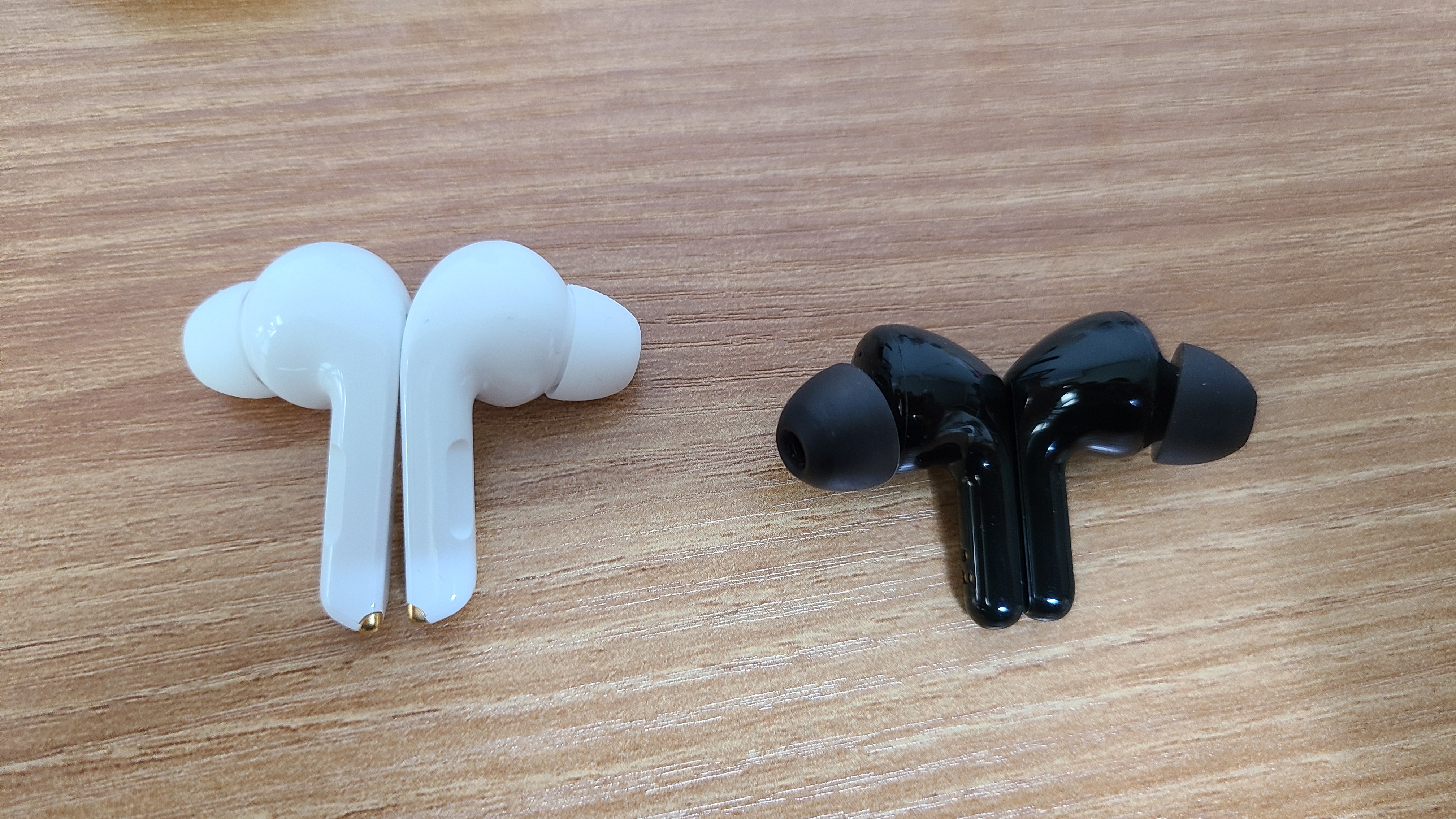 기존에 제가 쓰던 톤프리의 이어버즈랑 비교해봅니다. 누구 버즈가 살짝 길이가 더 긴 느낌이 있습니다. 다만 톤프리가 약간 무게감이 있는 제품이라 귀에 걸쳤을 때 느껴지는 무게감은 큰 차이가 없습니다.